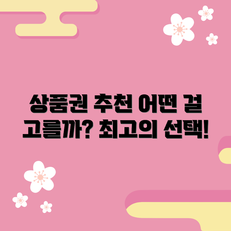 Q: 어떤 종류의 5만원 상품권을 선택해야 할까요?A: 개인의 취향이나 필요에 따라 선택할 수 있지만, 일반적으로 잘 알려진 백화점, 온라인 쇼핑몰, 음식점 또는 카페의 상품권이 인기가 많습니다. 특히 자주 이용하는 브랜드나 라이프스타일에 맞춘 상품권을 고려하는 것이 좋습니다.
